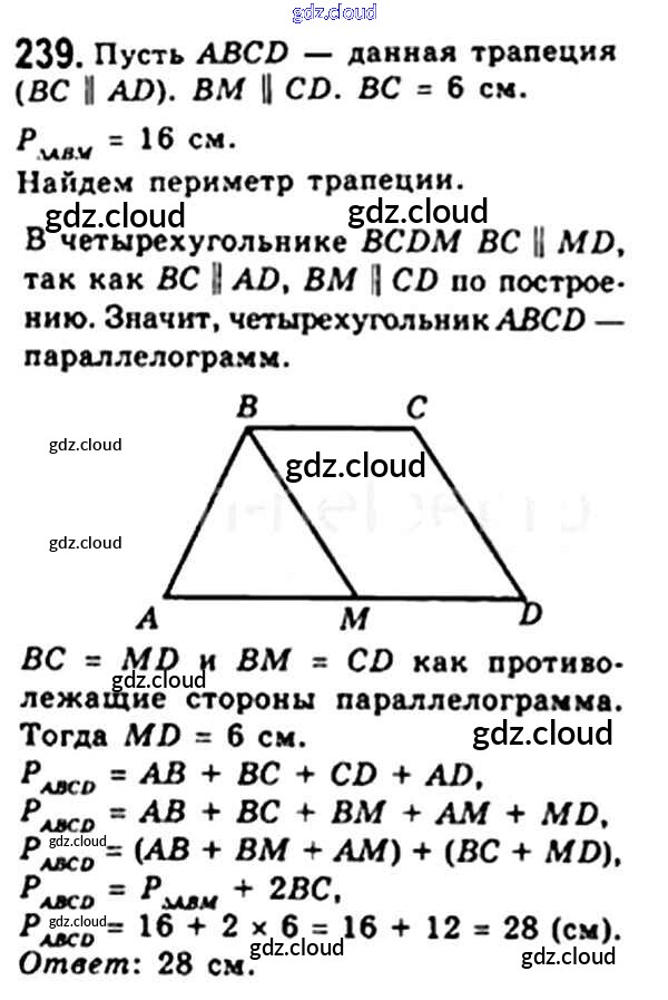 Ответ на задание 239 Учебник Геометрия за 8 (восьмой) класс Мерзляк, Полонский, Якир Алгоритм успеха 2015