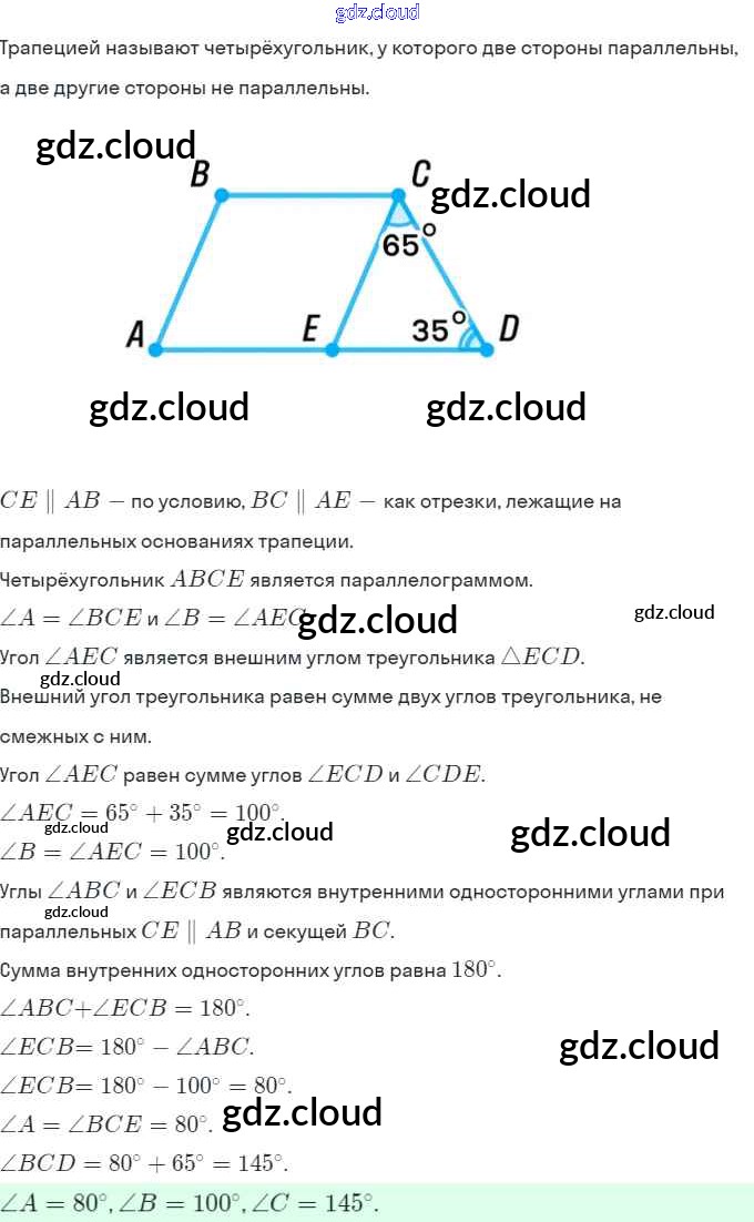 § 8. Трапеция Ответы. Глава 1. Четырехугольники по Геометрии 8 класс Учебник Мерзляк Алгоритм успеха Вентана-граф