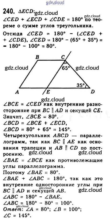Ответ на задание 240 Учебник Геометрия за 8 (восьмой) класс Мерзляк, Полонский, Якир Алгоритм успеха 2015