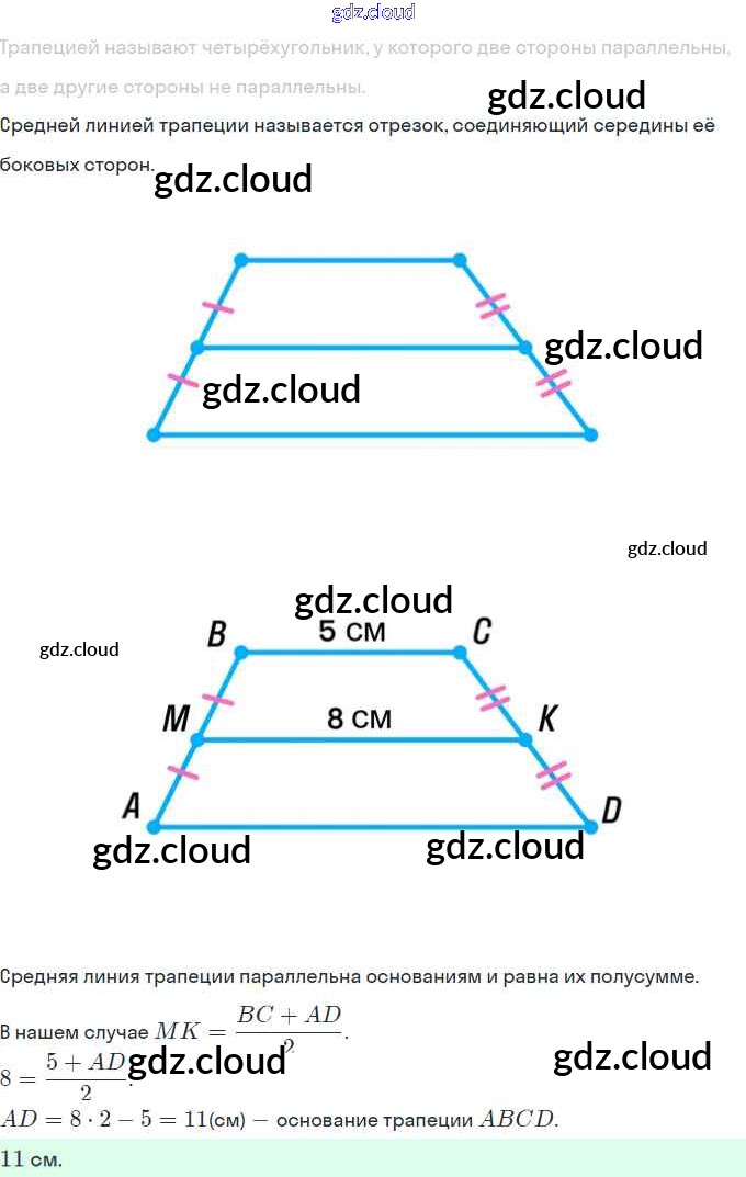 § 8. Трапеция Ответы. Глава 1. Четырехугольники по Геометрии 8 класс Учебник Мерзляк Алгоритм успеха Вентана-граф