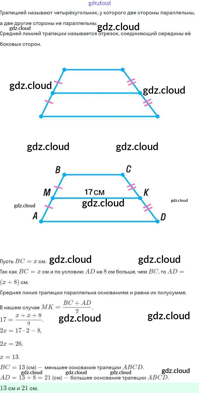 § 8. Трапеция Ответы. Глава 1. Четырехугольники по Геометрии 8 класс Учебник Мерзляк Алгоритм успеха Вентана-граф