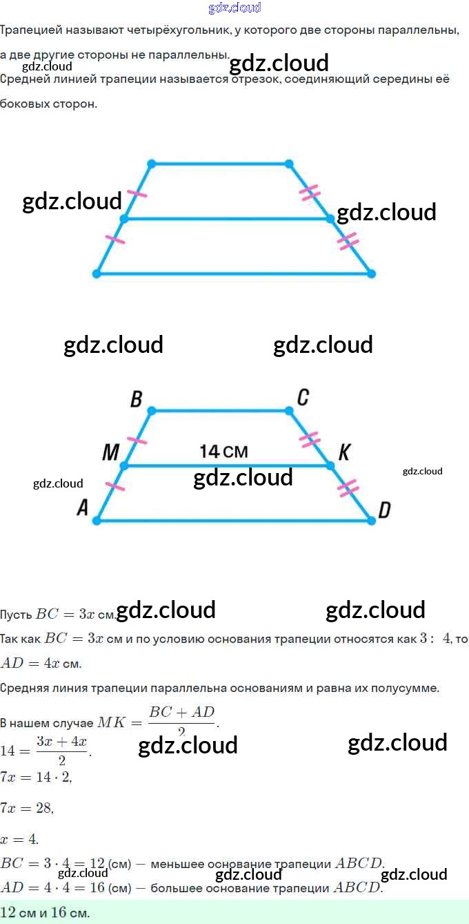 § 8. Трапеция Ответы. Глава 1. Четырехугольники по Геометрии 8 класс Учебник Мерзляк Алгоритм успеха Вентана-граф