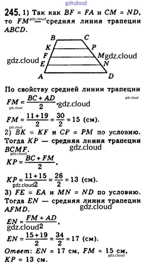 Ответ на задание 245 Учебник Геометрия за 8 (восьмой) класс Мерзляк, Полонский, Якир Алгоритм успеха 2015