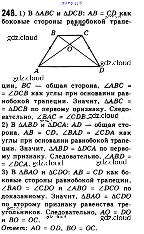 Ответ на задание 248 Учебник Геометрия за 8 (восьмой) класс Мерзляк, Полонский, Якир Алгоритм успеха 2015