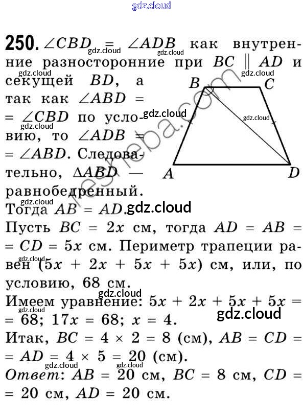 Ответ на задание 250 Учебник Геометрия за 8 (восьмой) класс Мерзляк, Полонский, Якир Алгоритм успеха 2015