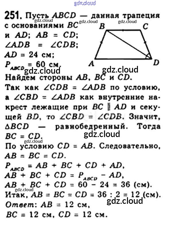 Ответ на задание 251 Учебник Геометрия за 8 (восьмой) класс Мерзляк, Полонский, Якир Алгоритм успеха 2015