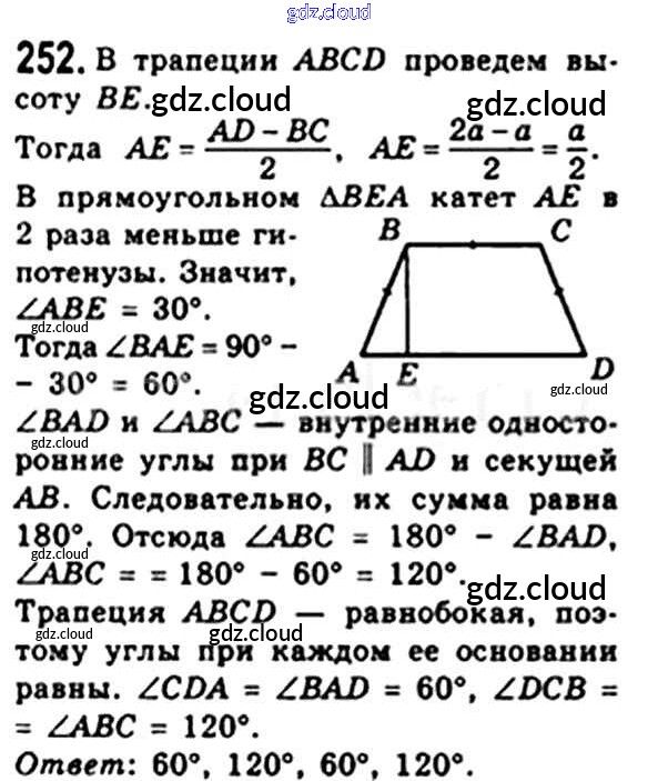 Ответ на задание 252 Учебник Геометрия за 8 (восьмой) класс Мерзляк, Полонский, Якир Алгоритм успеха 2015