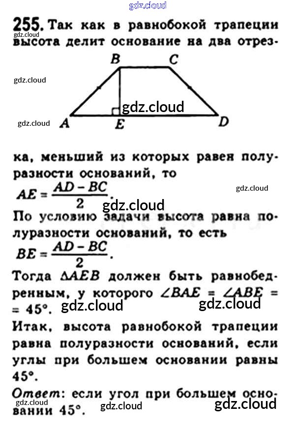 Ответ на задание 255 Учебник Геометрия за 8 (восьмой) класс Мерзляк, Полонский, Якир Алгоритм успеха 2015