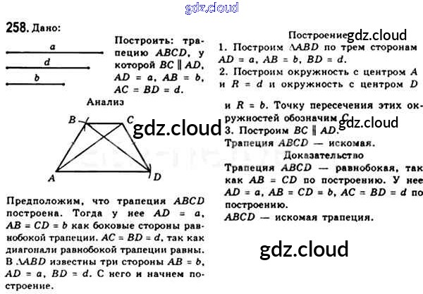 Ответ на задание 258 Учебник Геометрия за 8 (восьмой) класс Мерзляк, Полонский, Якир Алгоритм успеха 2015