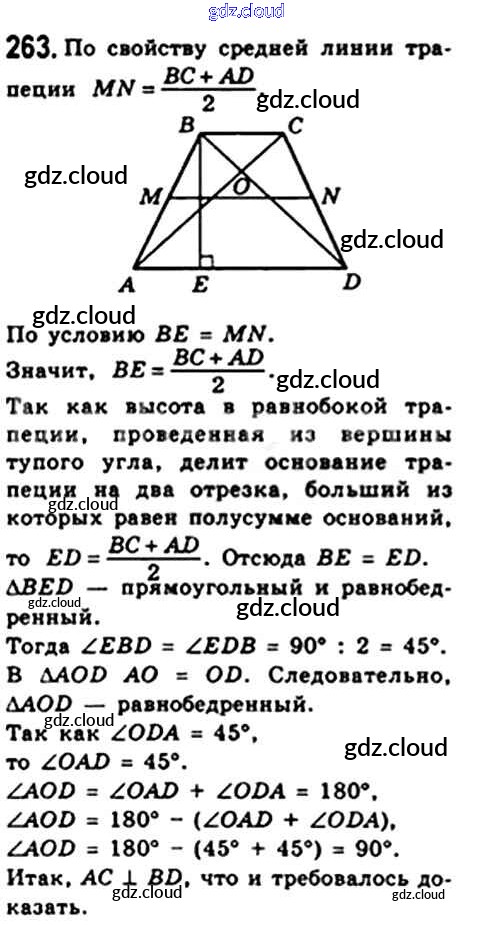 Ответ на задание 263 Учебник Геометрия за 8 (восьмой) класс Мерзляк, Полонский, Якир Алгоритм успеха 2015