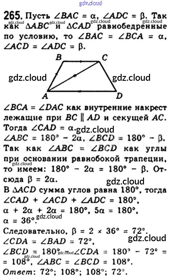 Ответ на задание 265 Учебник Геометрия за 8 (восьмой) класс Мерзляк, Полонский, Якир Алгоритм успеха 2015