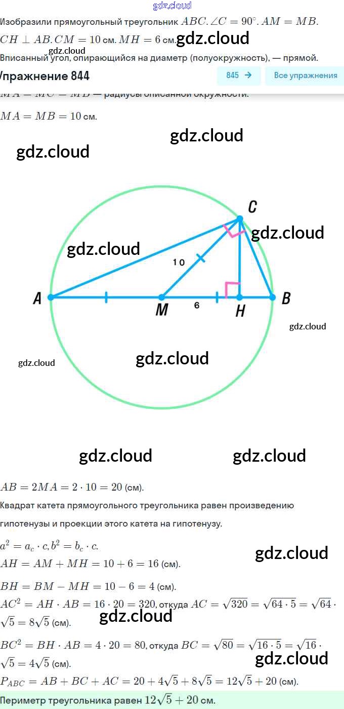 Ответ на задание 844 Учебник Геометрия за 8 (восьмой) класс Мерзляк, Полонский, Якир Алгоритм успеха 2015