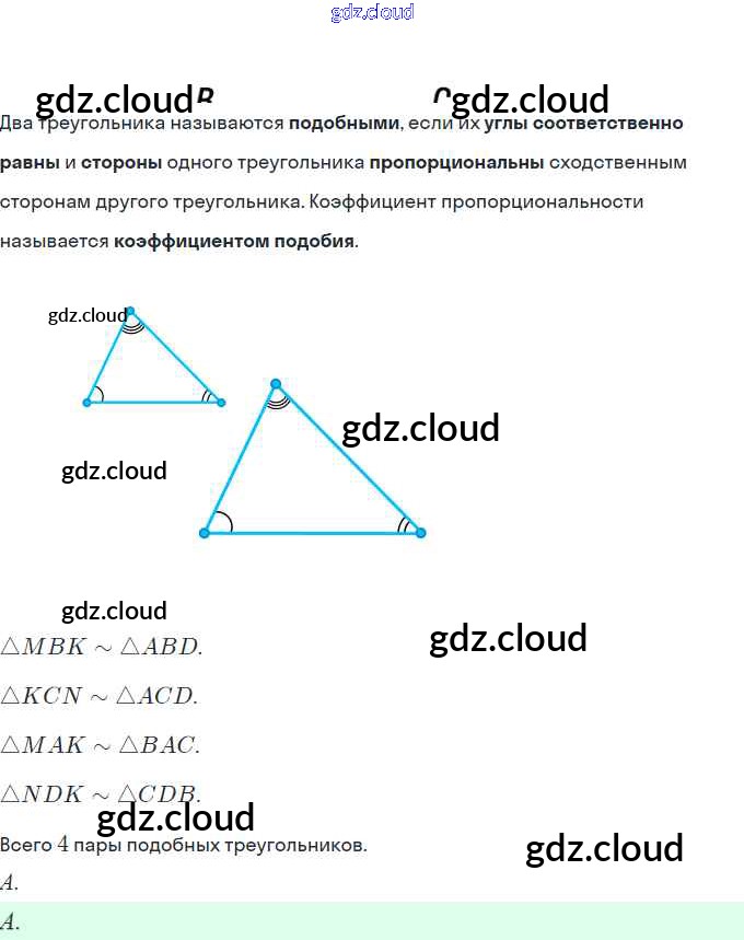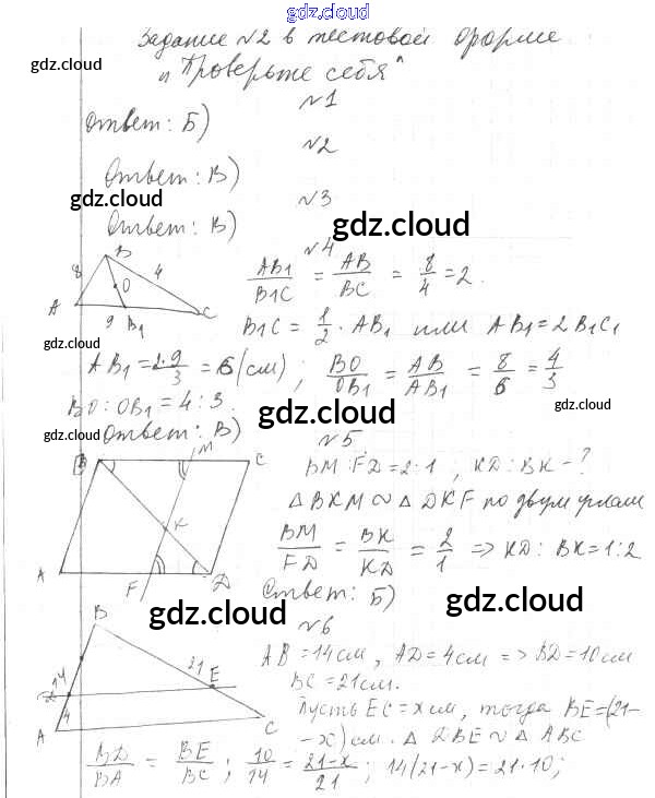 Проверь себя Ответы. Глава 2. Подобие треугольников по Геометрии 8 класс Учебник Мерзляк Алгоритм успеха Вентана-граф