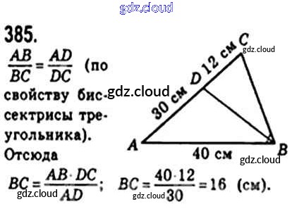 Ответ на задание 385 Учебник Геометрия за 8 (восьмой) класс Мерзляк, Полонский, Якир Алгоритм успеха 2015