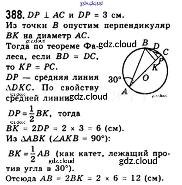 Ответ на задание 388 Учебник Геометрия за 8 (восьмой) класс Мерзляк, Полонский, Якир Алгоритм успеха 2015
