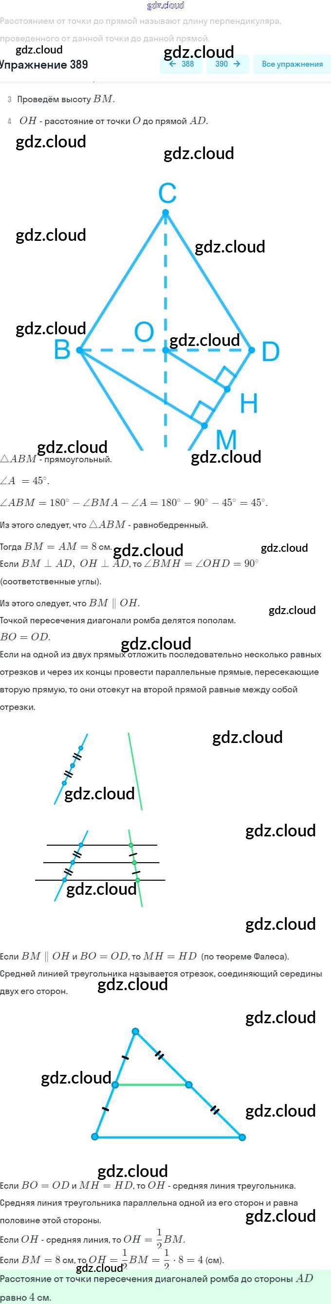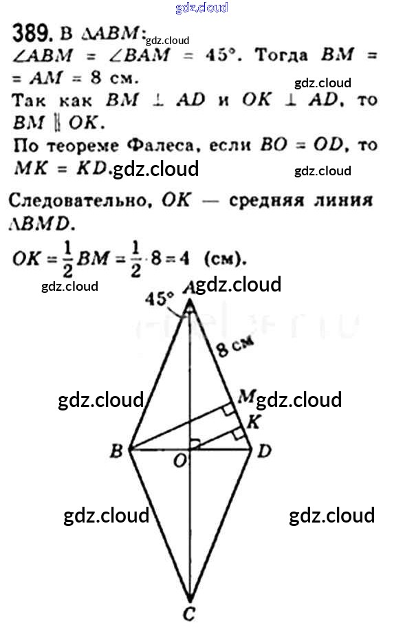 Ответ на задание 389 Учебник Геометрия за 8 (восьмой) класс Мерзляк, Полонский, Якир Алгоритм успеха 2015