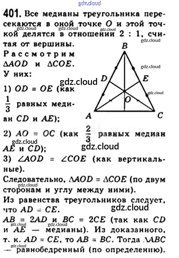 Ответ на задание 401 Учебник Геометрия за 8 (восьмой) класс Мерзляк, Полонский, Якир Алгоритм успеха 2015