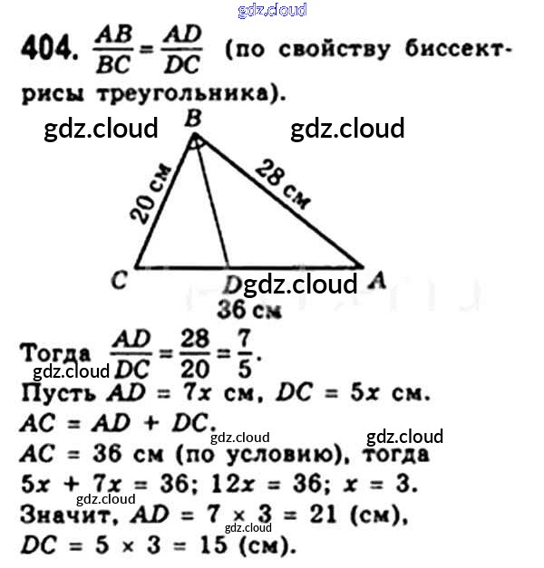 Ответ на задание 404 Учебник Геометрия за 8 (восьмой) класс Мерзляк, Полонский, Якир Алгоритм успеха 2015