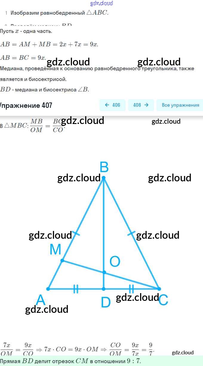Ответ на задание 407 Учебник Геометрия за 8 (восьмой) класс Мерзляк, Полонский, Якир Алгоритм успеха 2015