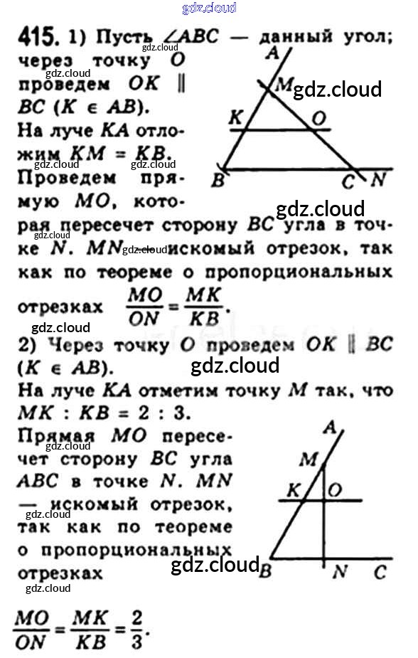 Ответ на задание 415 Учебник Геометрия за 8 (восьмой) класс Мерзляк, Полонский, Якир Алгоритм успеха 2015