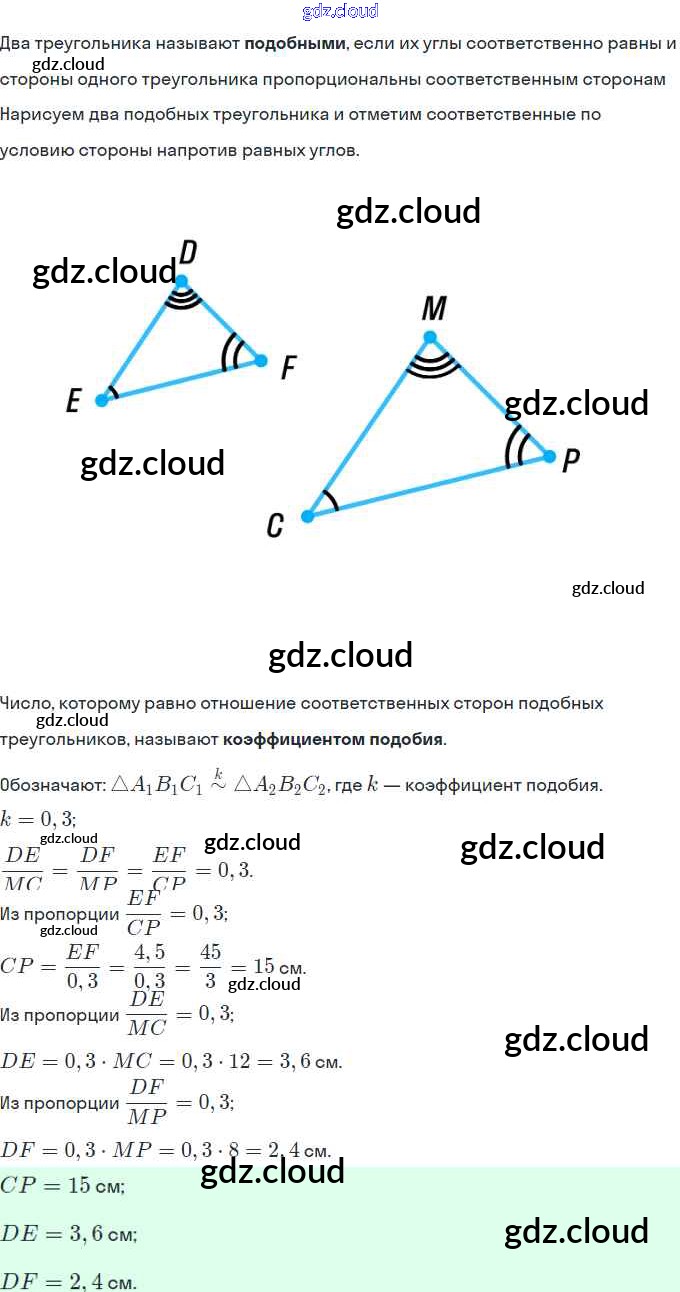§ 12. Подобные треугольники. Лемма о подобных треугольниках Ответы. Глава 2. Подобие треугольников по Геометрии 8 класс Учебник Мерзляк Алгоритм успеха Вентана-граф