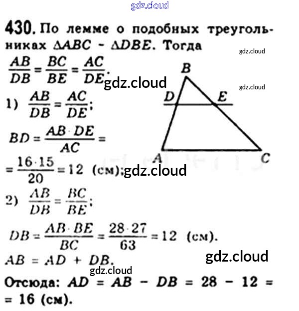 Ответ на задание 430 Учебник Геометрия за 8 (восьмой) класс Мерзляк, Полонский, Якир Алгоритм успеха 2015
