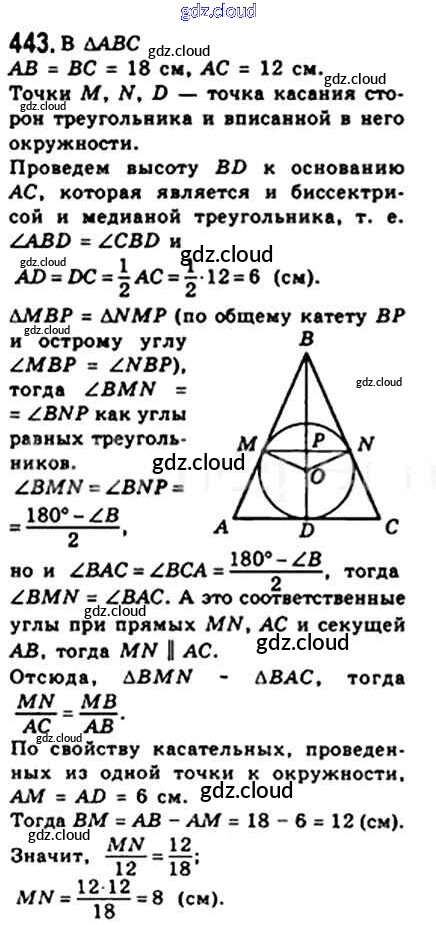 Ответ на задание 443 Учебник Геометрия за 8 (восьмой) класс Мерзляк, Полонский, Якир Алгоритм успеха 2015