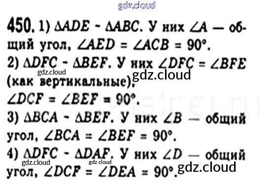 Ответ на задание 450 Учебник Геометрия за 8 (восьмой) класс Мерзляк, Полонский, Якир Алгоритм успеха 2015