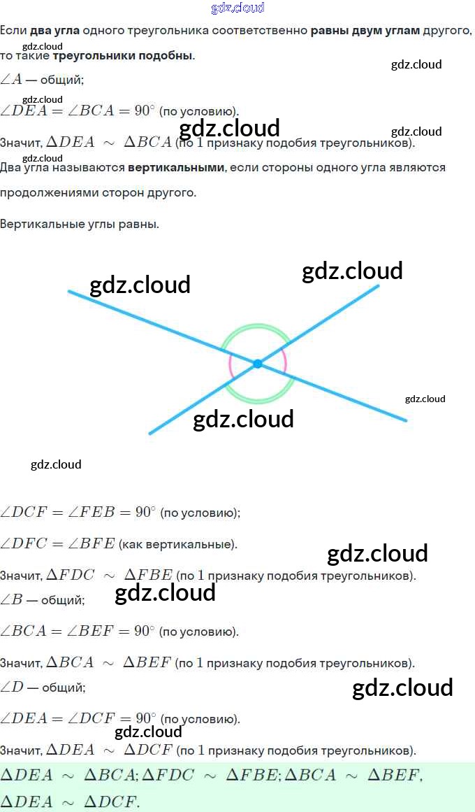 § 13. Первый признак подобия треугольника. Свойство пересекающихся хорд. Свойство касательной и секущей. Теорема Менелая. Теорема Птолемея. Ответы. Глава 2. Подобие треугольников по Геометрии 8 класс Учебник Мерзляк Алгоритм успеха Вентана-граф