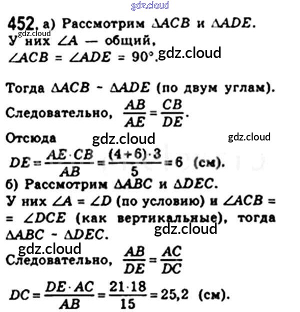 Ответ на задание 452 Учебник Геометрия за 8 (восьмой) класс Мерзляк, Полонский, Якир Алгоритм успеха 2015