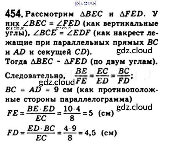 Ответ на задание 454 Учебник Геометрия за 8 (восьмой) класс Мерзляк, Полонский, Якир Алгоритм успеха 2015