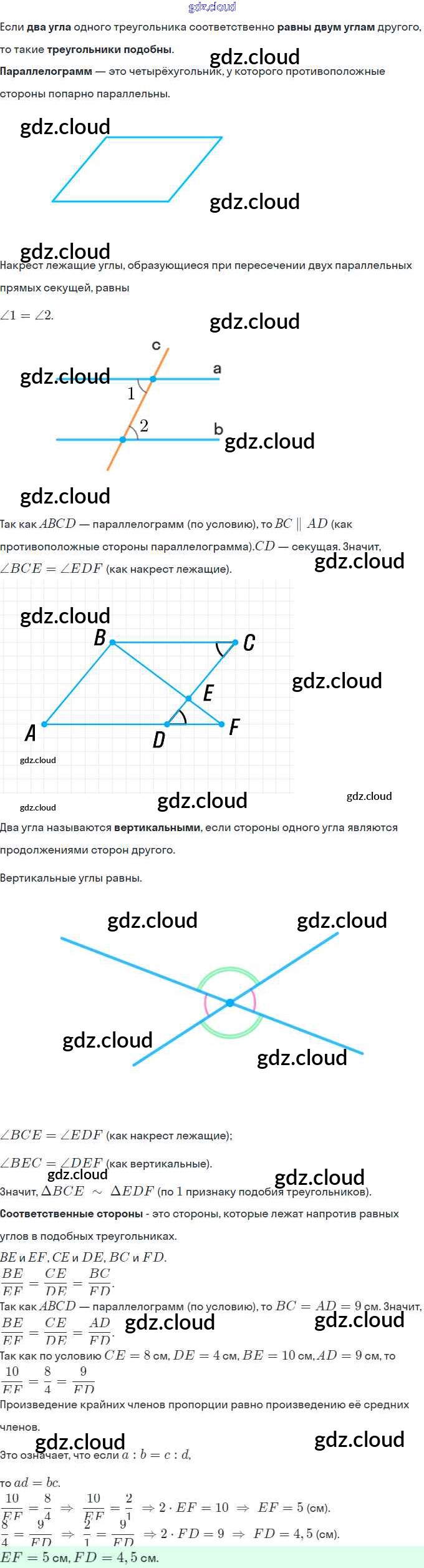 § 13. Первый признак подобия треугольника. Свойство пересекающихся хорд. Свойство касательной и секущей. Теорема Менелая. Теорема Птолемея. Ответы. Глава 2. Подобие треугольников по Геометрии 8 класс Учебник Мерзляк Алгоритм успеха Вентана-граф
