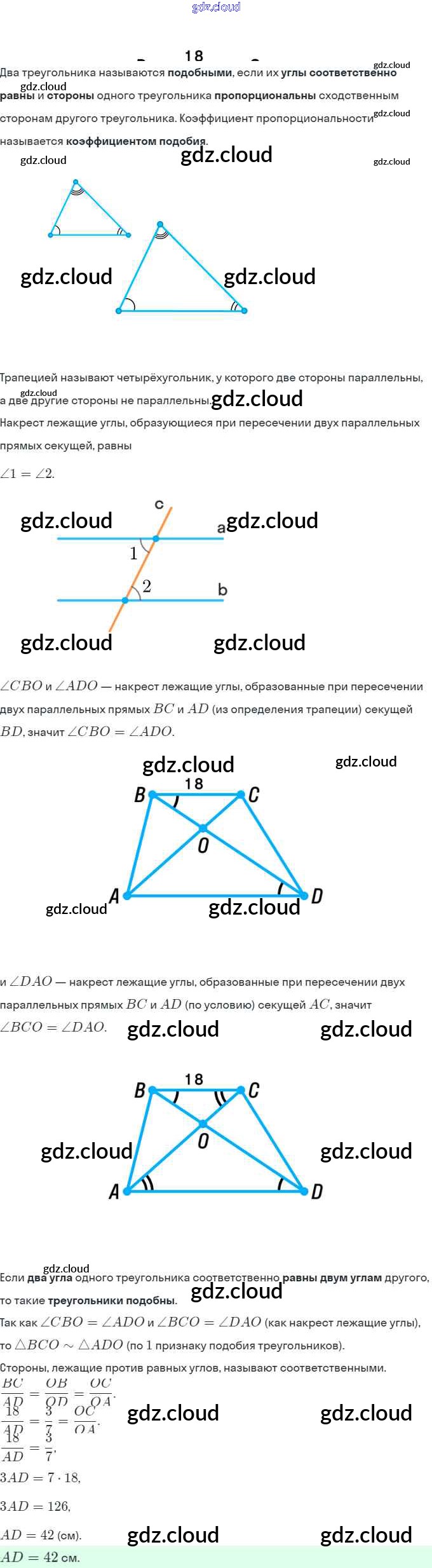 § 13. Первый признак подобия треугольника. Свойство пересекающихся хорд. Свойство касательной и секущей. Теорема Менелая. Теорема Птолемея. Ответы. Глава 2. Подобие треугольников по Геометрии 8 класс Учебник Мерзляк Алгоритм успеха Вентана-граф