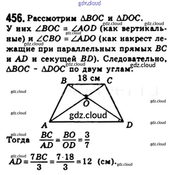 Ответ на задание 456 Учебник Геометрия за 8 (восьмой) класс Мерзляк, Полонский, Якир Алгоритм успеха 2015