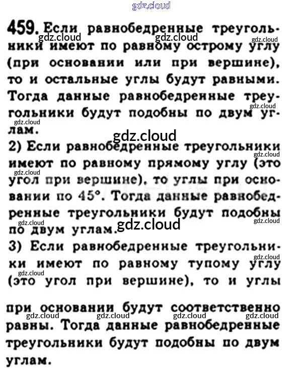 Ответ на задание 459 Учебник Геометрия за 8 (восьмой) класс Мерзляк, Полонский, Якир Алгоритм успеха 2015