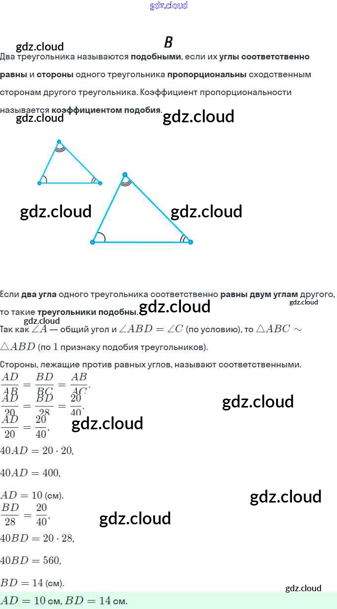 § 13. Первый признак подобия треугольника. Свойство пересекающихся хорд. Свойство касательной и секущей. Теорема Менелая. Теорема Птолемея. Ответы. Глава 2. Подобие треугольников по Геометрии 8 класс Учебник Мерзляк Алгоритм успеха Вентана-граф