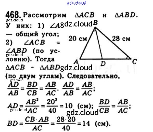Ответ на задание 468 Учебник Геометрия за 8 (восьмой) класс Мерзляк, Полонский, Якир Алгоритм успеха 2015