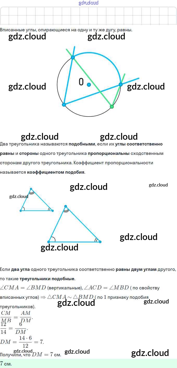 § 13. Первый признак подобия треугольника. Свойство пересекающихся хорд. Свойство касательной и секущей. Теорема Менелая. Теорема Птолемея. Ответы. Глава 2. Подобие треугольников по Геометрии 8 класс Учебник Мерзляк Алгоритм успеха Вентана-граф