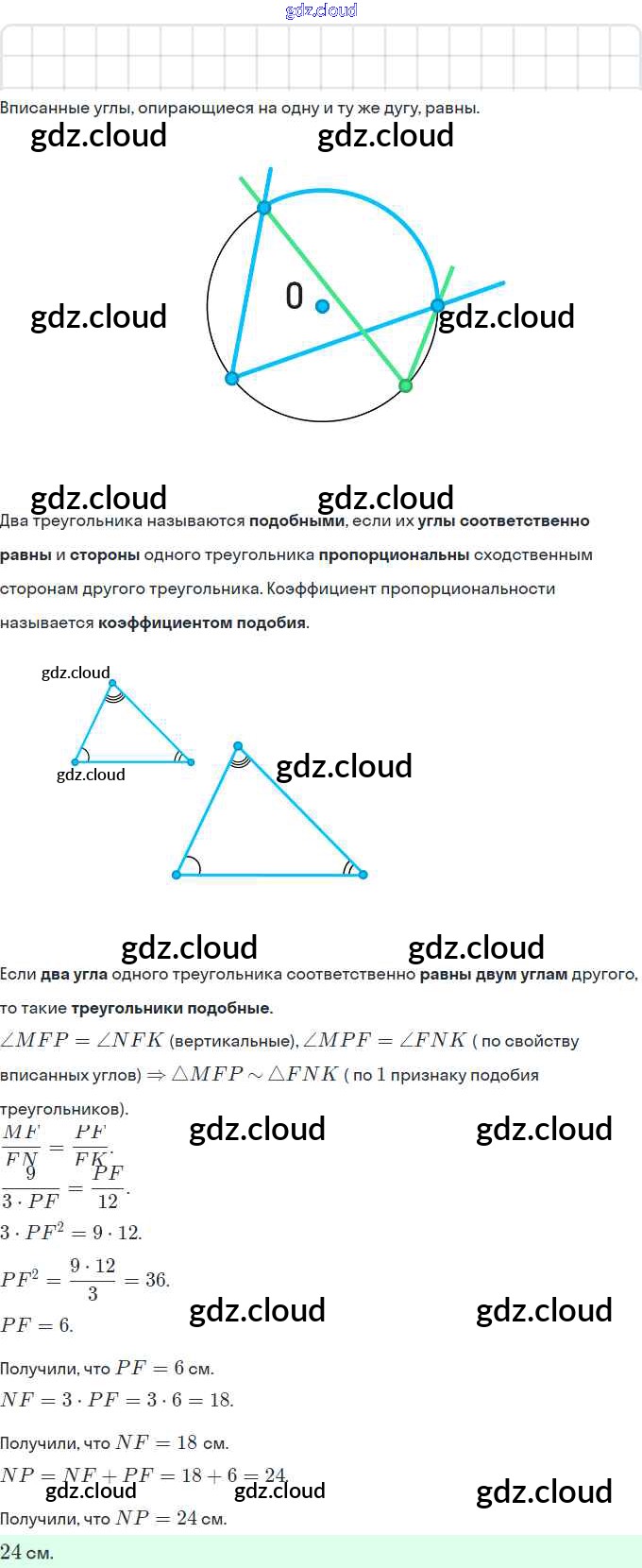 § 13. Первый признак подобия треугольника. Свойство пересекающихся хорд. Свойство касательной и секущей. Теорема Менелая. Теорема Птолемея. Ответы. Глава 2. Подобие треугольников по Геометрии 8 класс Учебник Мерзляк Алгоритм успеха Вентана-граф