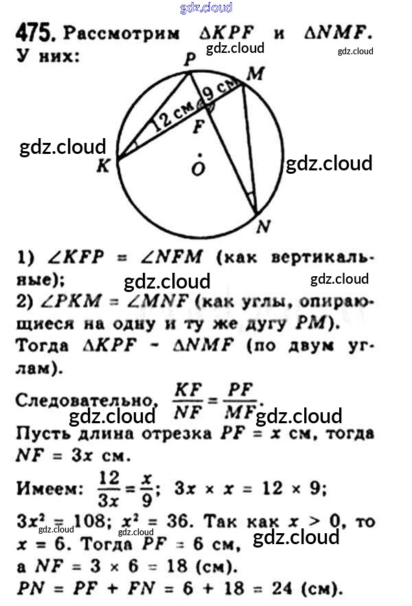 Ответ на задание 475 Учебник Геометрия за 8 (восьмой) класс Мерзляк, Полонский, Якир Алгоритм успеха 2015