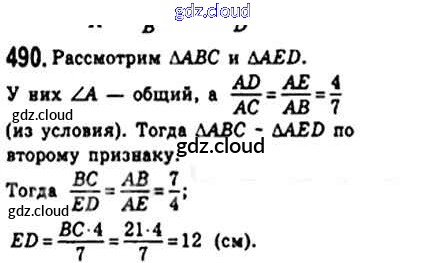 Ответ на задание 490 Учебник Геометрия за 8 (восьмой) класс Мерзляк, Полонский, Якир Алгоритм успеха 2015