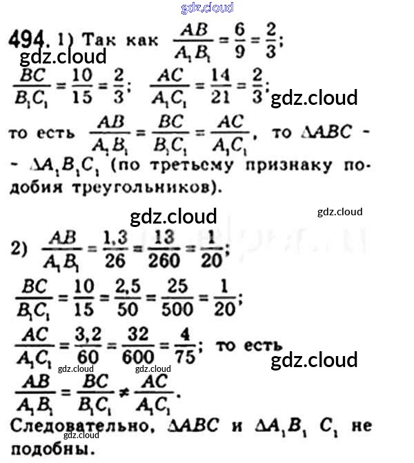 Ответ на задание 494 Учебник Геометрия за 8 (восьмой) класс Мерзляк, Полонский, Якир Алгоритм успеха 2015