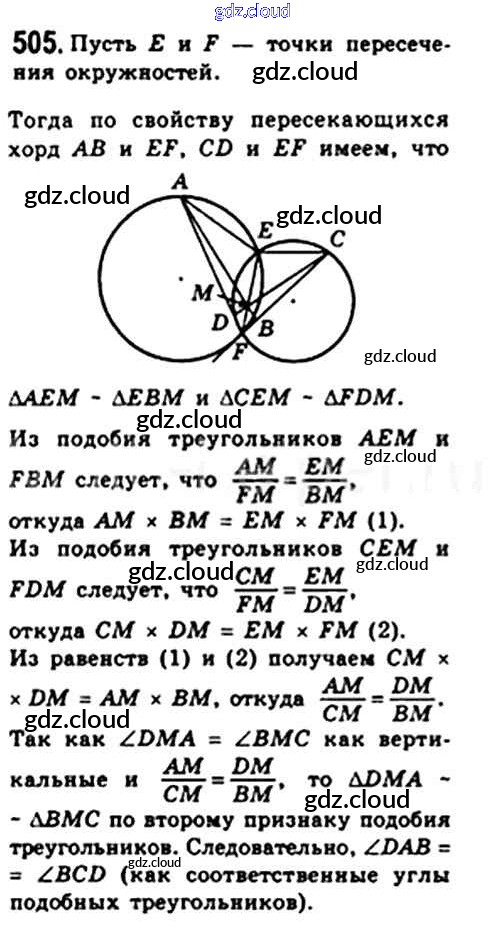 Ответ на задание 505 Учебник Геометрия за 8 (восьмой) класс Мерзляк, Полонский, Якир Алгоритм успеха 2015