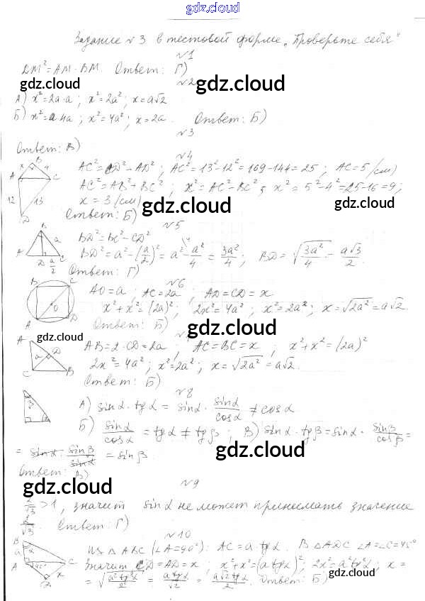Проверь себя Ответы. Глава 3. Решение прямоугольных треугольников по Геометрии 8 класс Учебник Мерзляк Алгоритм успеха Вентана-граф