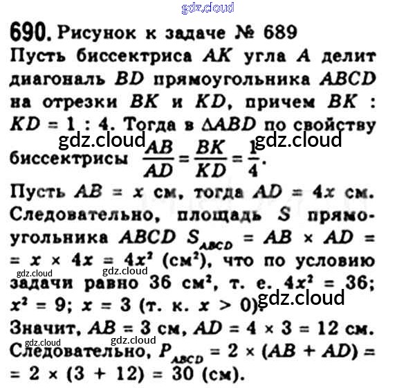 Ответ на задание 690 Учебник Геометрия за 8 (восьмой) класс Мерзляк, Полонский, Якир Алгоритм успеха 2015