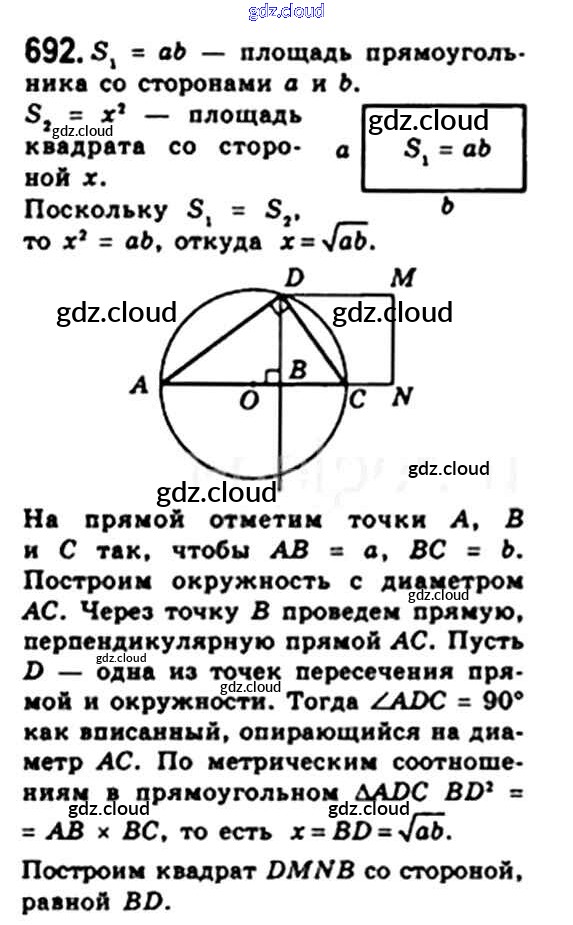 Ответ на задание 692 Учебник Геометрия за 8 (восьмой) класс Мерзляк, Полонский, Якир Алгоритм успеха 2015