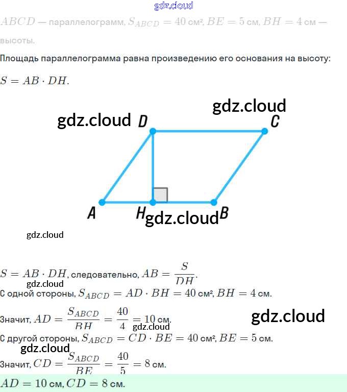 § 21. Площадь параллелограмма Ответы. Глава 4. Многоугольники. Площадь многоугольника по Геометрии 8 класс Учебник Мерзляк Алгоритм успеха Вентана-граф