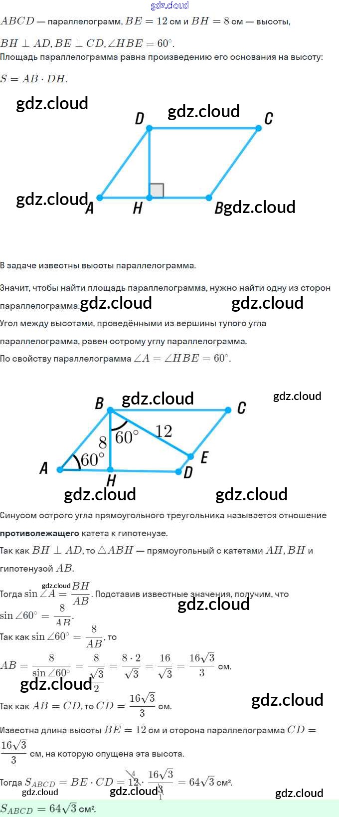 § 21. Площадь параллелограмма Ответы. Глава 4. Многоугольники. Площадь многоугольника по Геометрии 8 класс Учебник Мерзляк Алгоритм успеха Вентана-граф