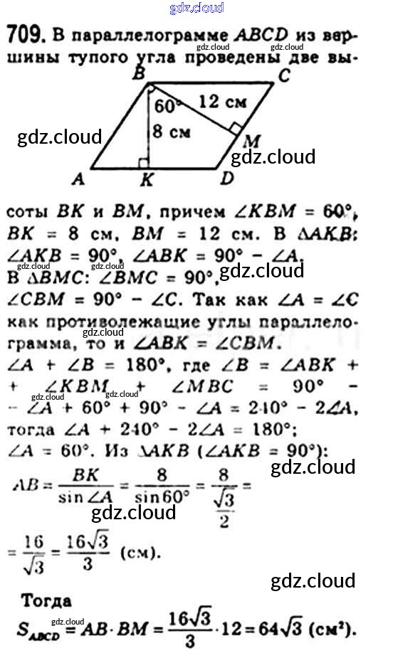 Ответ на задание 709 Учебник Геометрия за 8 (восьмой) класс Мерзляк, Полонский, Якир Алгоритм успеха 2015