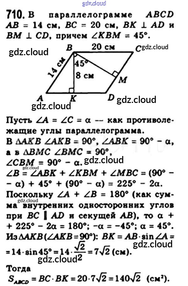 Ответ на задание 710 Учебник Геометрия за 8 (восьмой) класс Мерзляк, Полонский, Якир Алгоритм успеха 2015